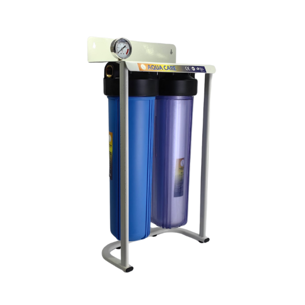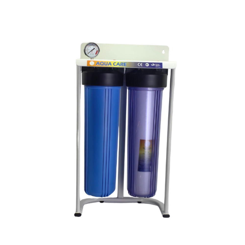 The Jumbo 2-Stage Water Purifier Filter provides optimal protection for electrical appliances such as washing machines, dishwashers, and water heaters from solid impurities such as dust, algae, and rust. It also improves water quality by removing unwanted odors, making water purer and healthier to use.